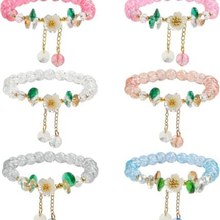 6Packs Colorful Flower Crystal Bracelets,Handmade Stretch Bracelet Floral Beaded Bracelets for Women Jewelry