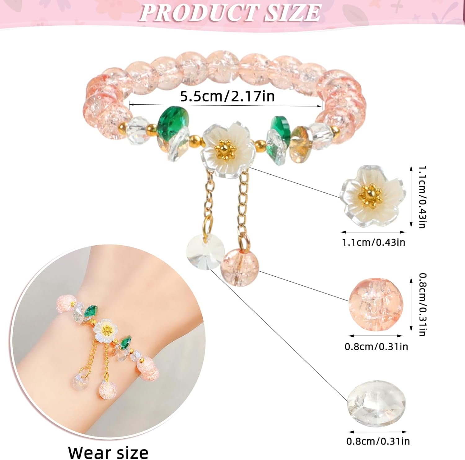 - [Premium Quality and Durability]: Crafted with sturdy elastic cords,resin beads and resin flower charm. Lightweight design ensures all-day comfort, safe to wear, it won’t burden on your wrist.
