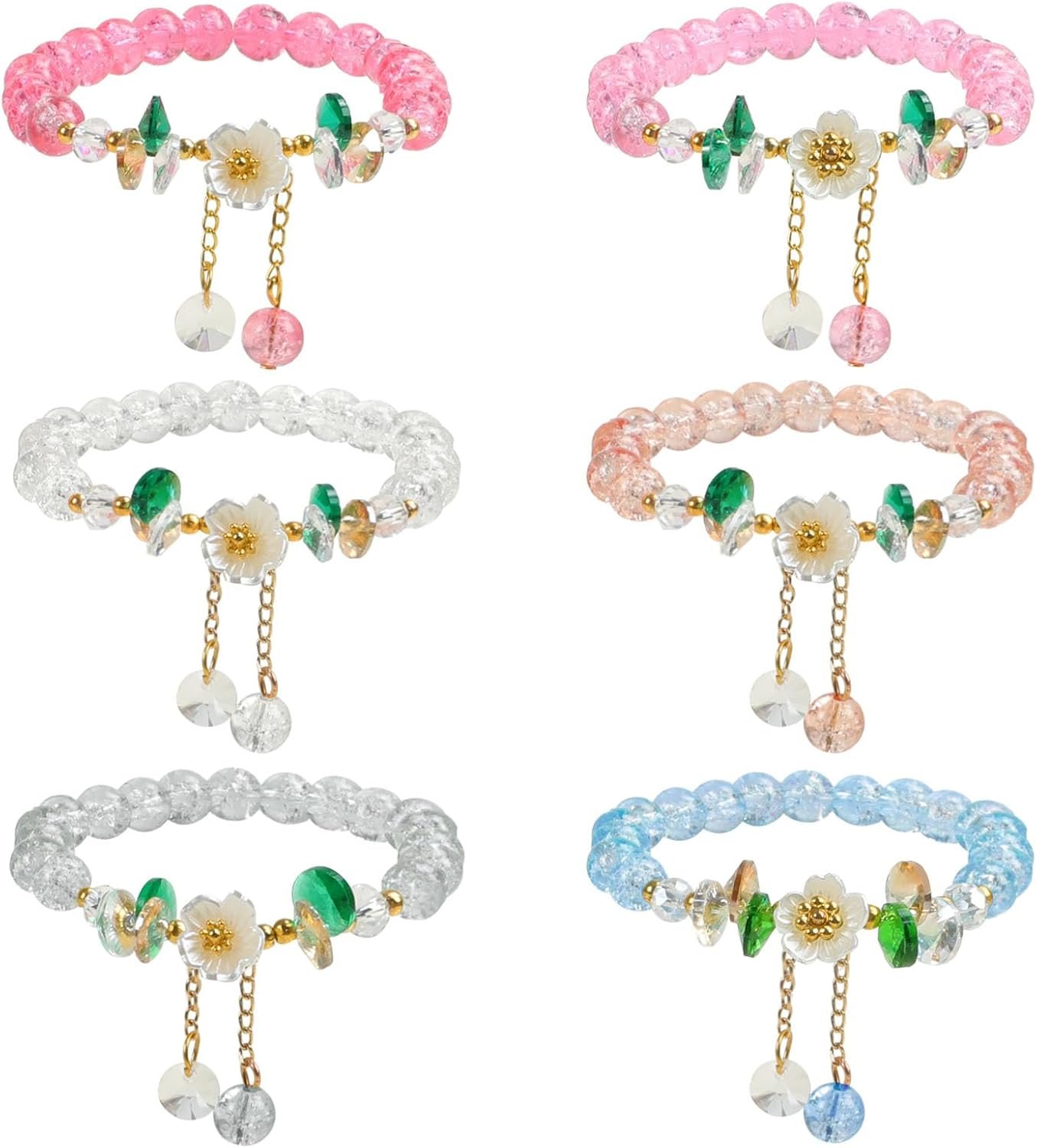 6Packs Colorful Flower Crystal Bracelets,Handmade Stretch Bracelet Floral Beaded Bracelets for Women Jewelry