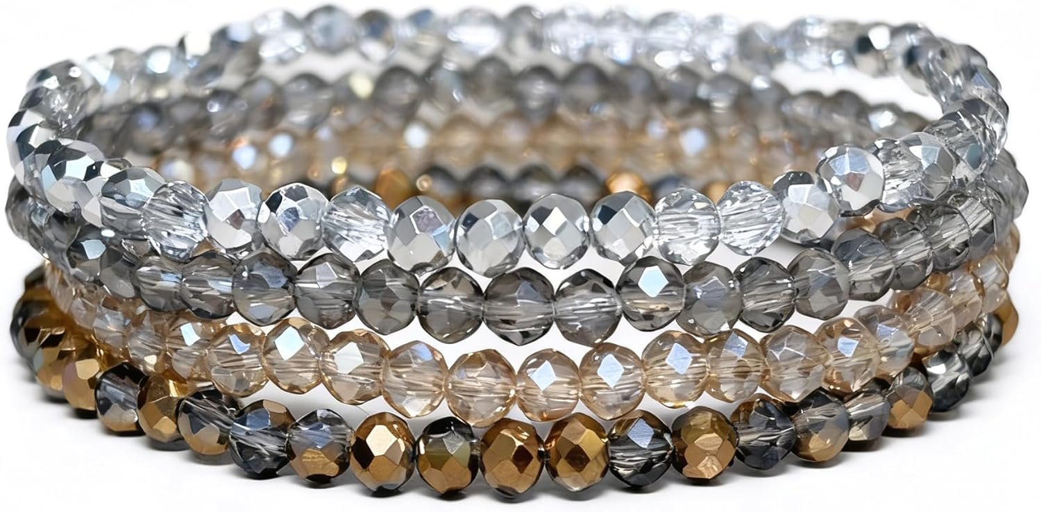 Boho Crystal Bracelet Set of 4pcs/set,4mm Beads Stackable Layering Stretch Bracelets for Women, Friendship Gifts