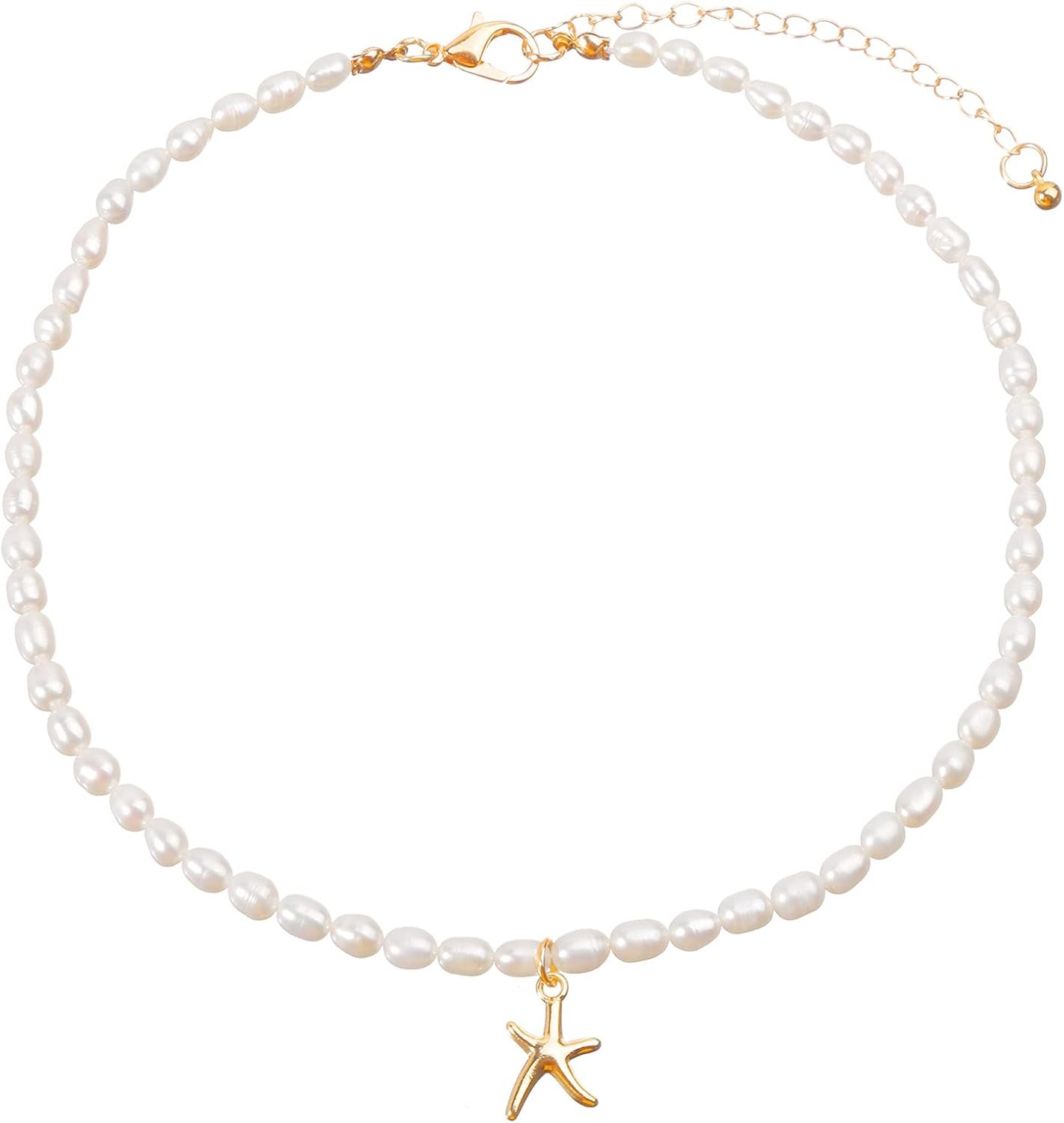 Natural Freshwater Pearl Choker Necklace for Women, Trendy 14K Gold Plated Pearl Necklaces Handmade Jewelry Gift
